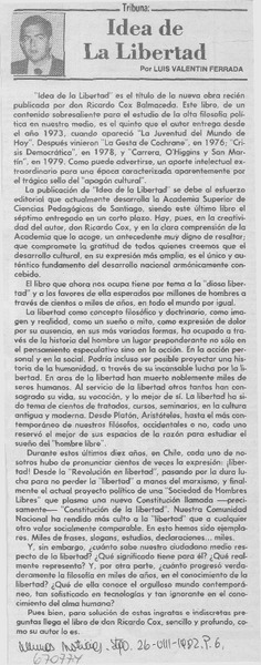 Idea de la libertad [artículo] Luis Valentín Ferrada.