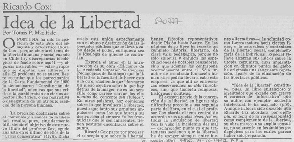 Aparareció libro "Idea de la libertad", de Ricardo Cox. [artículo]