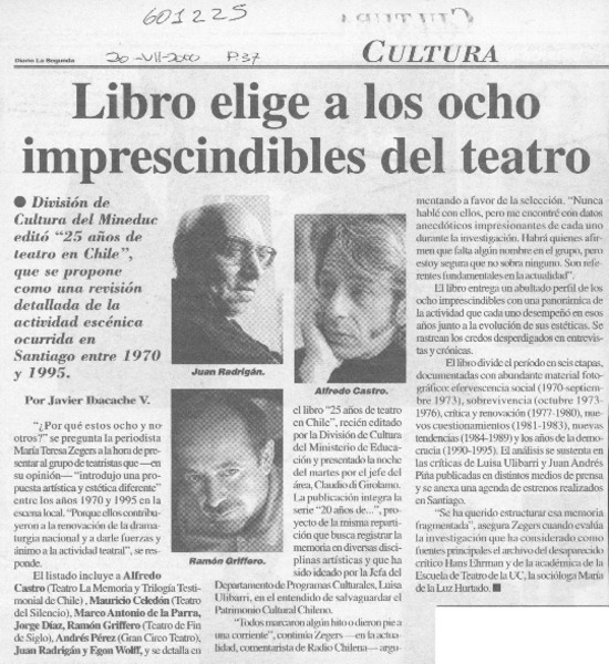 Libro elige a los ocho imprescindibles del teatro [artículo] Javier Ibacache