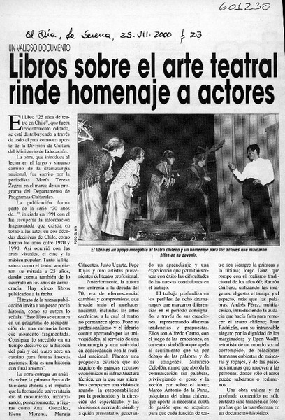 Libros sobre el arte teatral rinde homenaje a actores [artículo]