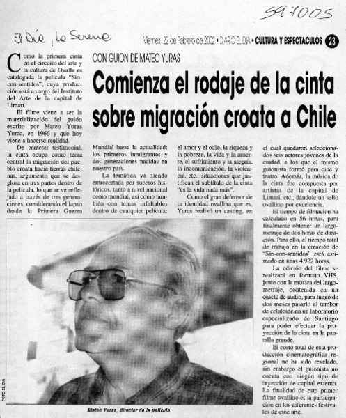 Comienza el rodaje de la cinta sobre migración croata a Chile [artículo]