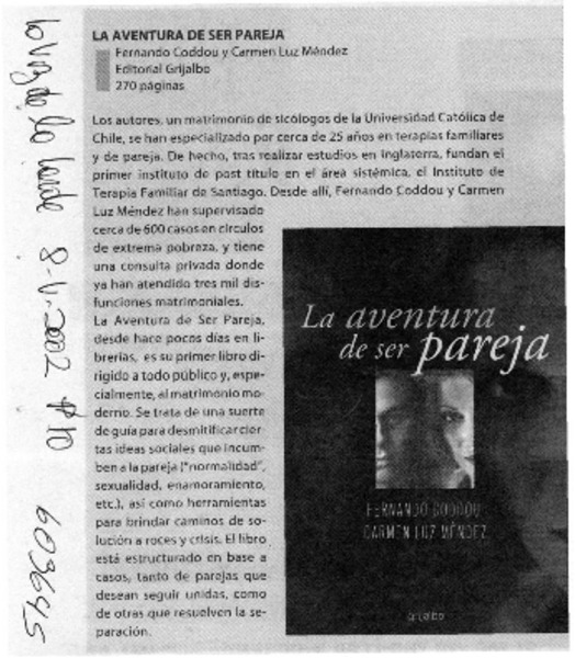 Autores chilenos - Méndez, Carmen Luz - Aventura de ser pareja, La - Coddou Placier, Fernando
