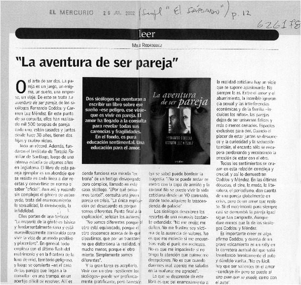 La aventura de ser pareja [artículo] Luis Rodríguez.