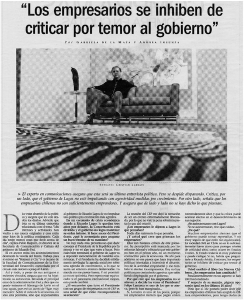 Los empresarios se inhiben de criticar por temor al gobierno : [entrevistas] [artículo] Gabriela de la Maza y Andrea Insunza.