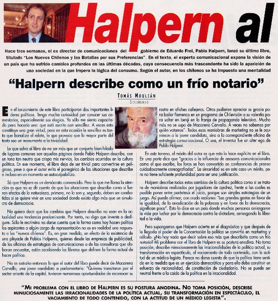 Halpern al banquillo [artículo] Tomás Moulian y Enrique Correa Ríos.