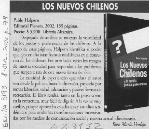 Los nuevos chilenos [artículo] Rosa María Verdejo