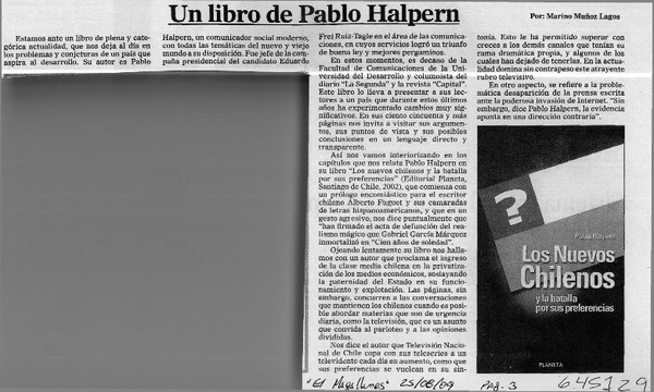 Un libro de Pablo Halpern [artículo] Marino Muñoz Lagos