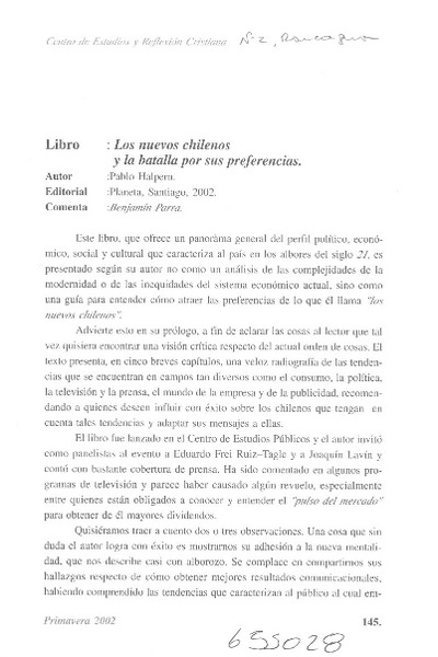Autores chilenos - Halpern, Pablo - Nuevos chilenos y la batalla por sus preferencias