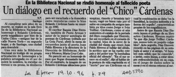 Un diálogo en el recuerdo del "Chico" Cárdenas [artículo] X. P.