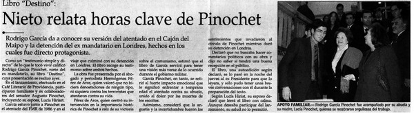 Nieto de Pinochet presentó libro en el que relata atentado de 1986 [artículo].