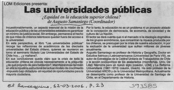 Universidades públicas - Samaniego, Augusto - Autores chilenos