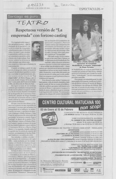 Respetuosa versión de "La emperrada" con forzoso casting [artículo] Javier Ibacache V.