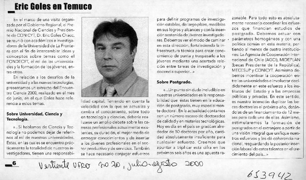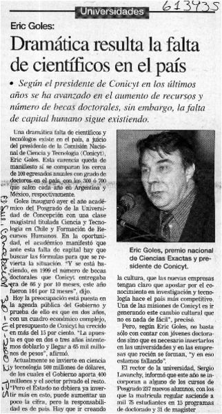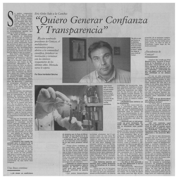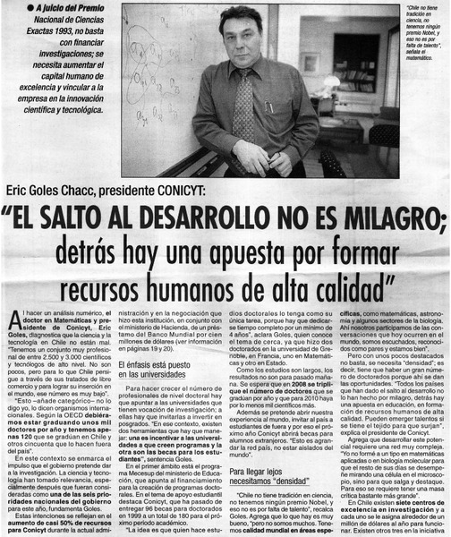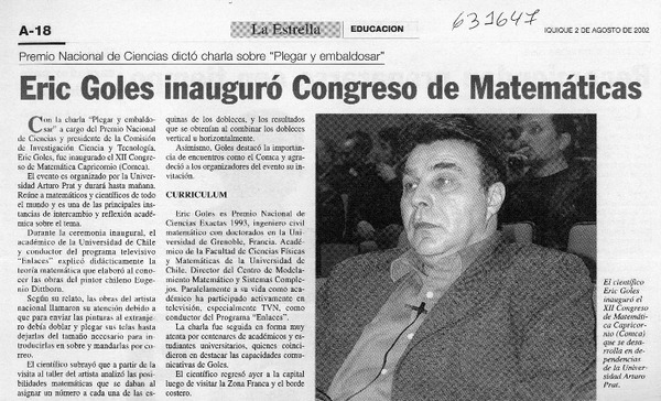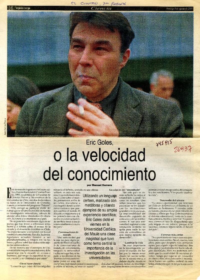 Eric Goles, o la velocidad del conocimiento [artículo] Manuel Herrera.