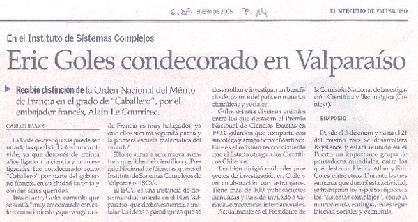 Eric Goles condecorado en Valparaíso [artículo] Carlos Ramos