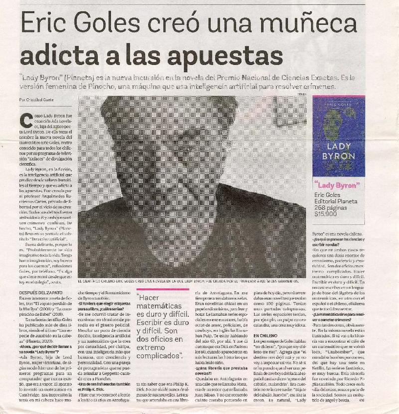 Eric Goles creó una muñeca adicta a las apuestas [entrevista] [artículo] : Gaete Cristóbal.