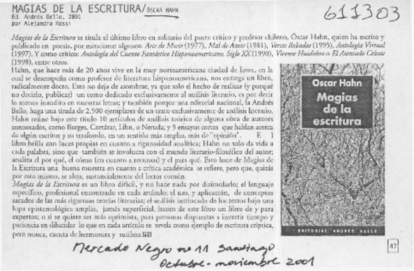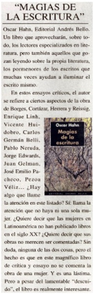 Autores chilenos - Hahn, Óscar - Magias de la escritura