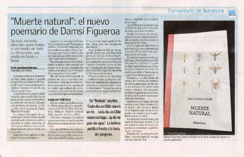 "Muerte natural" : el nuevo poemario de Damsi Figueroa [artículo] Por Dr José Manuel Rodríguez,