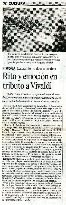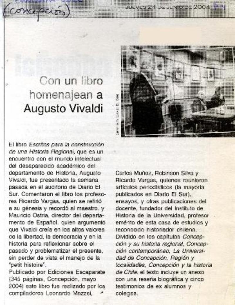 Con un libro homenajean a Augusto Vivaldi. [artículo]