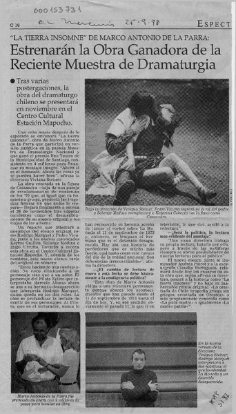 Estrenarán la obra ganadora de la reciente muestra de dramaturgia [artículo].