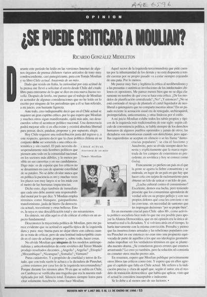 Se puede criticar a Moulian? [artículo] Ricardo González Middleton.
