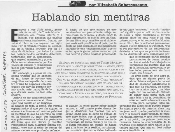 Hablando sin mentiras [artículo] Elizabeth Subercaseaux.