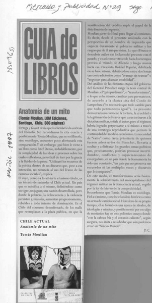 Autores chilenos - Moulian, Tomás - Chile actual, anatomía de un mito