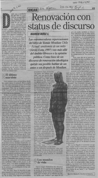 Renovación con status de discurso [artículo] Mauricio Muñoz G.