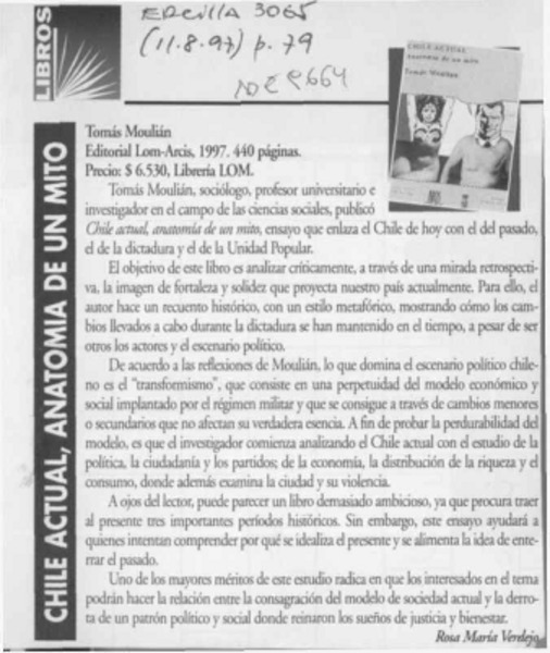 Chile actual, anatomía de un mito [artículo] Rosa María Verdejo.