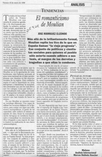 El romanticismo de Moulian [artículo] José Rodríguez Elizondo.