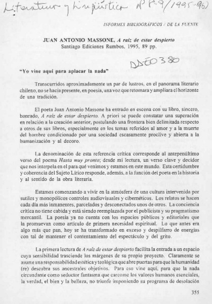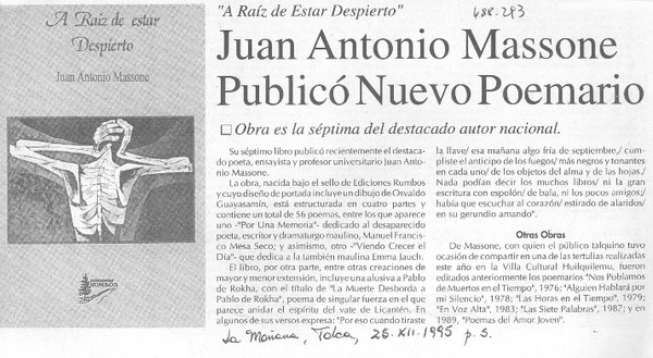 Juan Antonio Massone, a raíz de estar despierto [artículo] José Alberto de la Fuente.