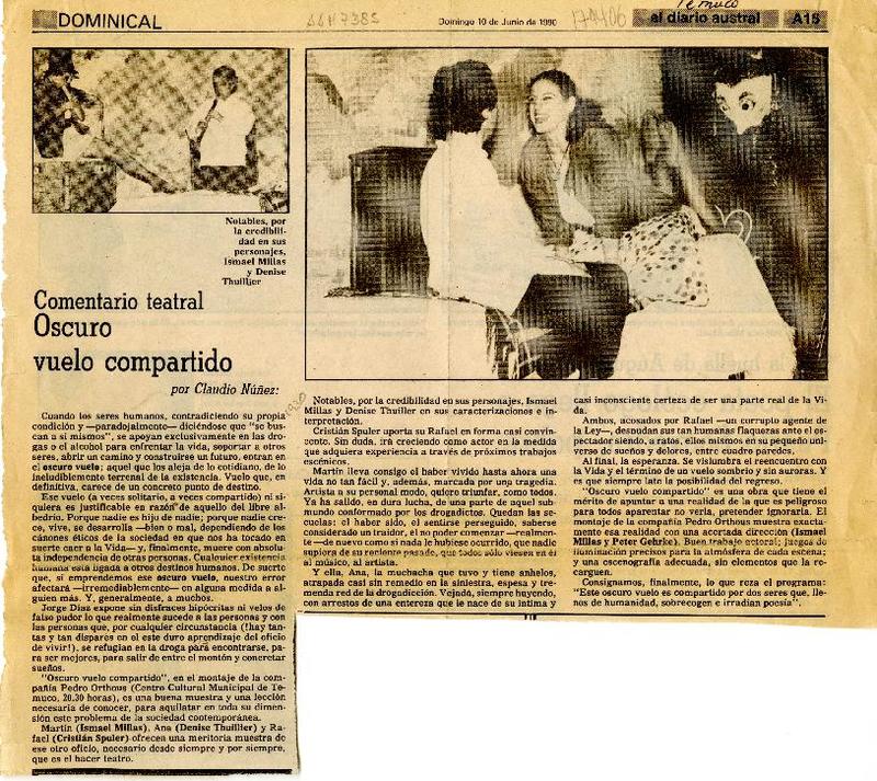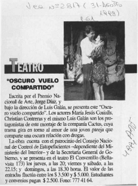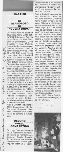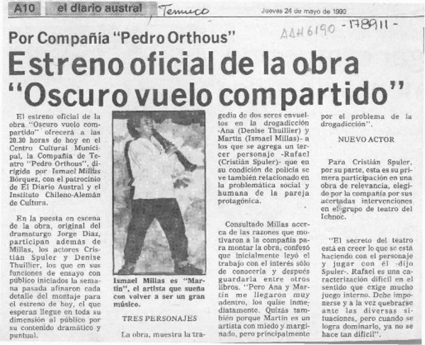 Estreno oficial de la obra "Oscuro vuelo compartido" [artículo].