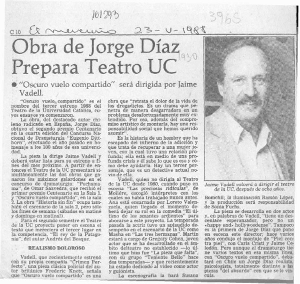 El Teatro UC estrena obra de Jorge Díaz [artículo].