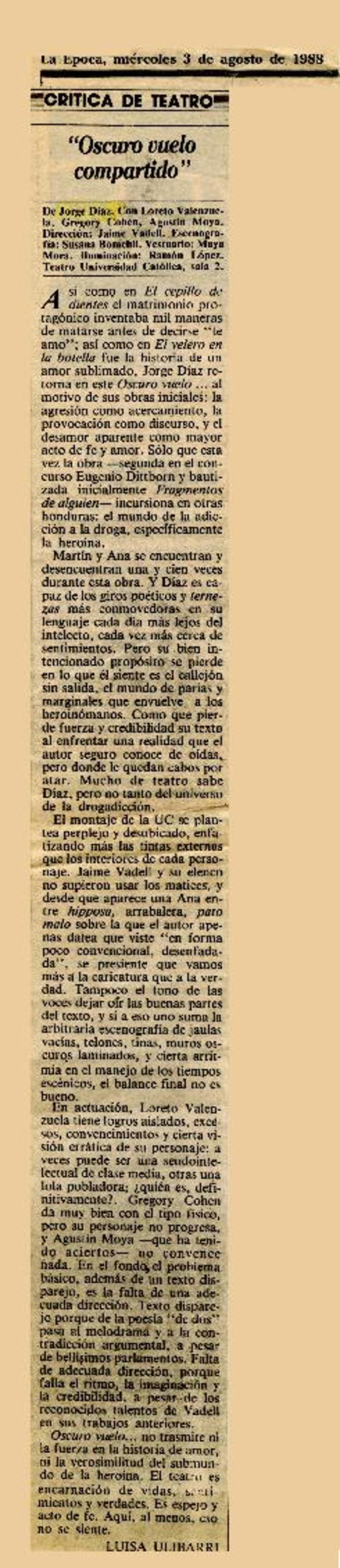 "Oscuro vuelo compartido" [artículo] Luisa Ulibarri.