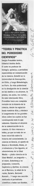 Autores chilenos - Prenafeta Jenkin, Sergio - Teoría y práctica del periodismo científico