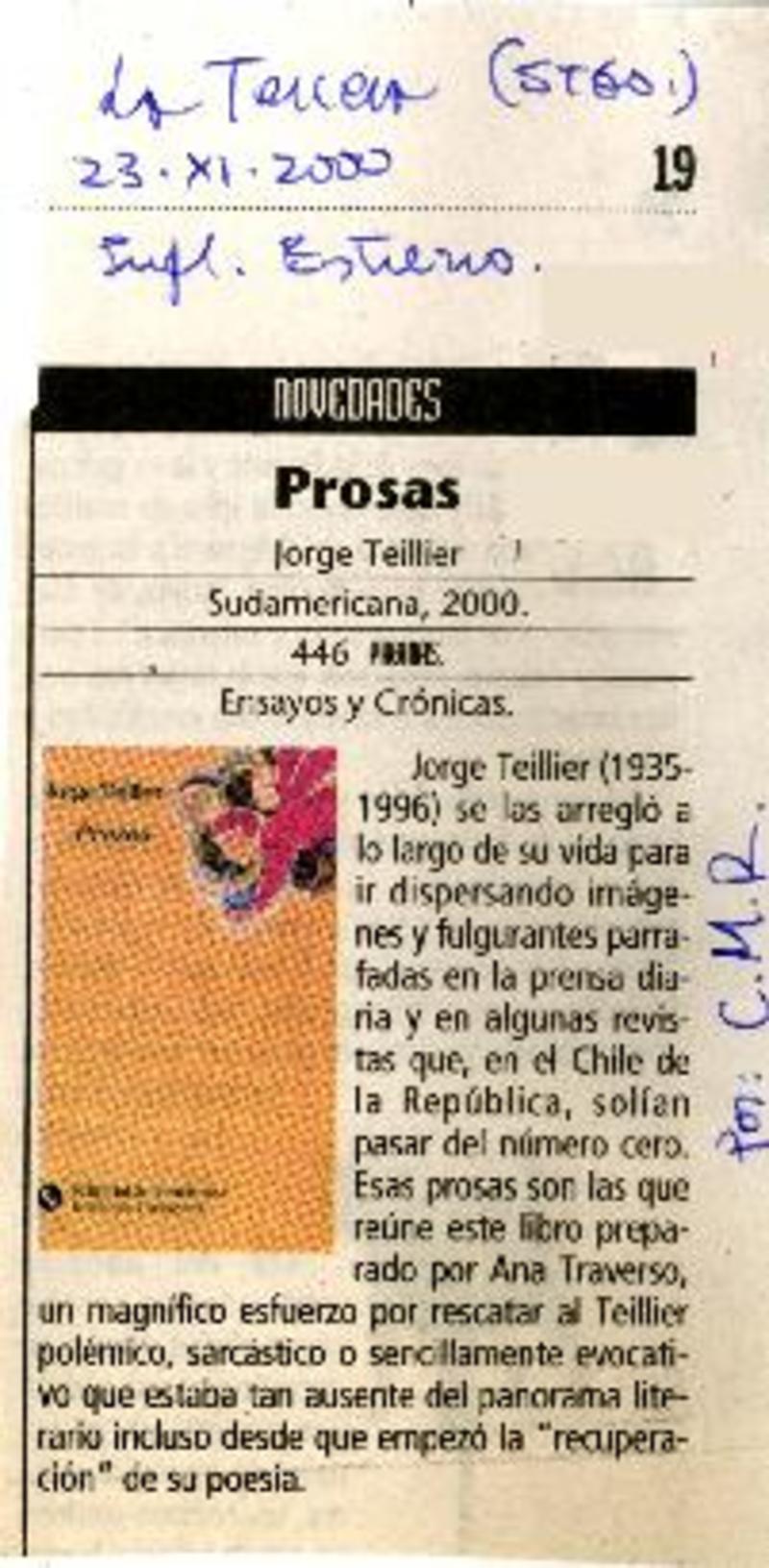 La prosa de Jorge Teillier [artículo] Jorge Arturo Flores