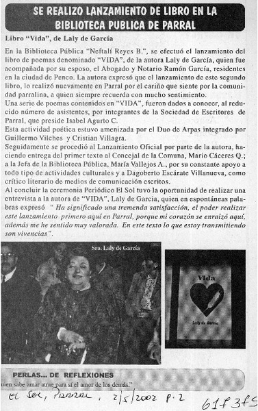 Lanzamiento de libro de poemas "Vida" [artículo]