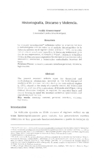 Historiografía , discurso y violencia [artículo] Freddy Timmermann.