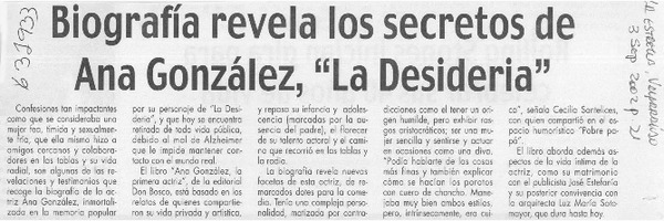 Biografía revela los secretos de Ana González, "La Desideria" [artículo]