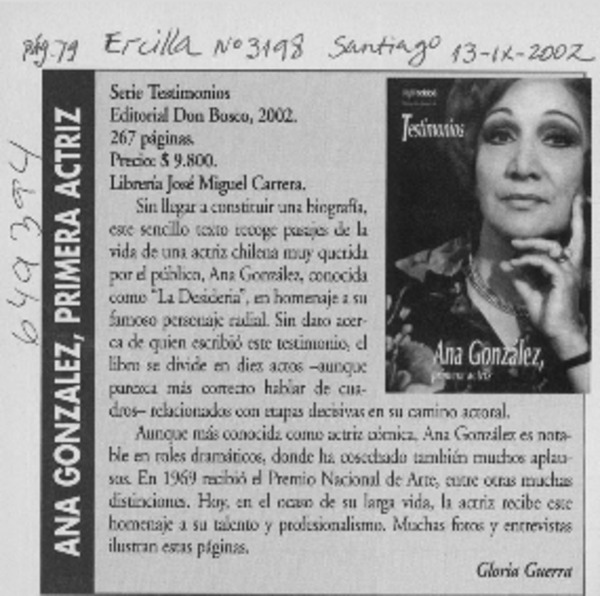 Autores chilenos - González, Ana - Ana González, la primera actriz