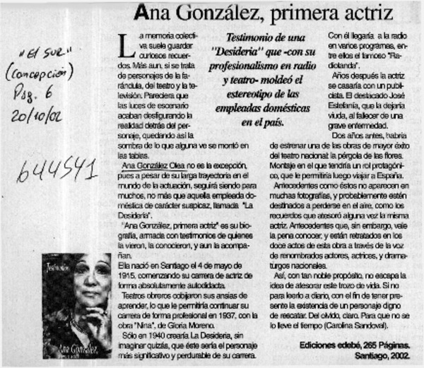 Ana González, primera actriz [artículo] Carolina Sandoval