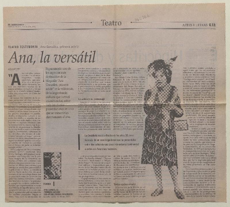 Ana, la versátil [artículo] Juan Andrés Piña.