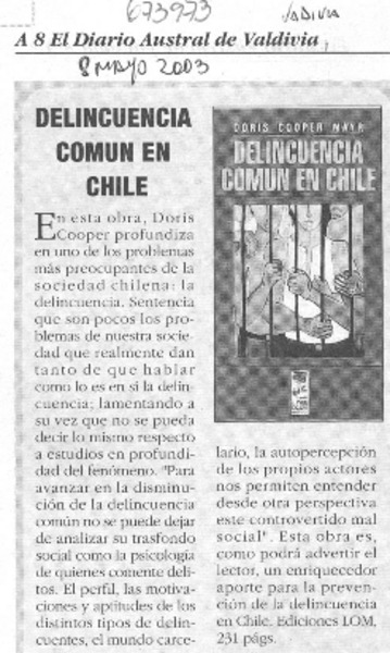 Autoras chilenas - Cooper, Doris - Delincuencia común en Chile
