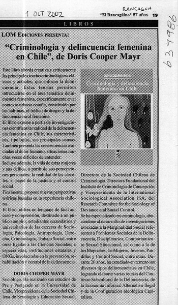 Autores chilenos - Cooper, Doris - Criminología y delincuencia femenina en Chile