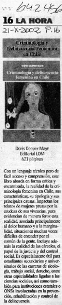 Criminología y delincuencia femenina en Chile - Cooper, Doris - Autores chilenos