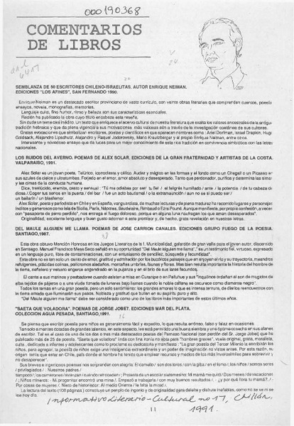 Neiman, Enrique - Jobet, Jorge - Carrión Canales, José - Del Maule alguien me llama - Saeta que voladora - Semblanza de 50 escritores chileno-israelitas - Solar, Alex - Los ruidos del averno