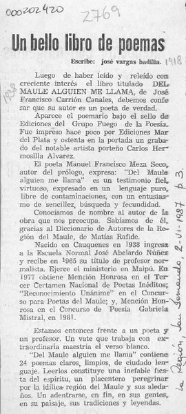 Del Maule alguien me llama [artículo] Manuel Francisco Mesa Seco.
