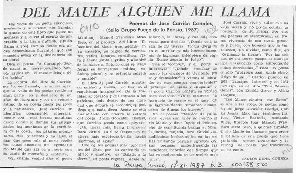Del Maule alguien me llama [artículo] Carlos René Correa.