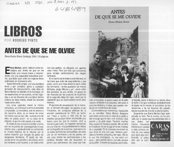 Autores chilenos - Muñoz, Elena - Antes de que se me olvide
