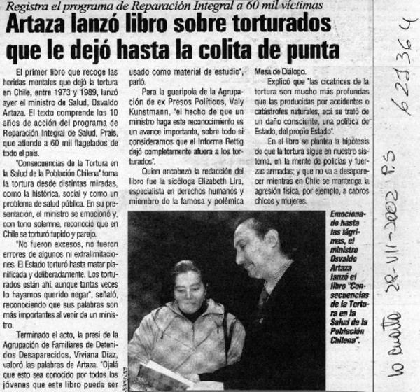 Artaza lanzó libro sobre torturados que le dejó hasta la colita de punta [artículo].