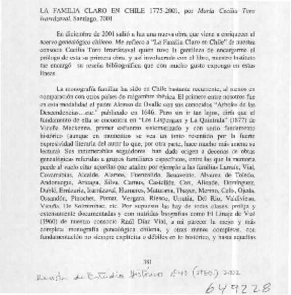 Autores chilenos - Toro, Cecilia - Familia Claro en Chile